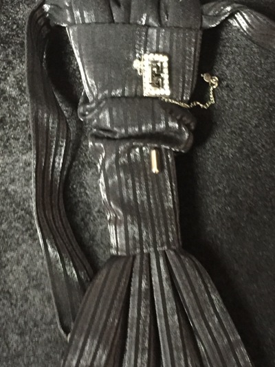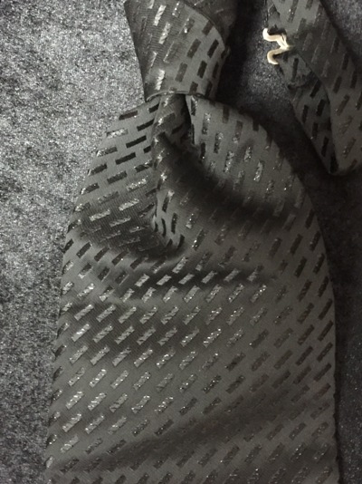 Black Cravat with Handkerchief for top pocket, Cravat has silver pattern and small diamond on the neck.