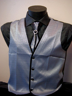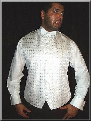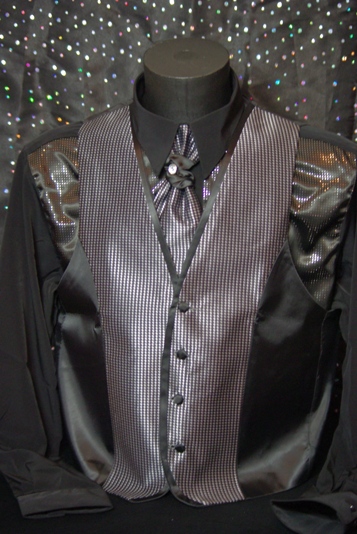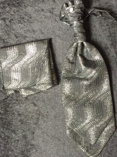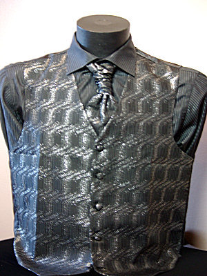 Good Looking silver Waistcoat with matching Cravat with black stone & diamonds on the Cravat to add that little bit of touch..