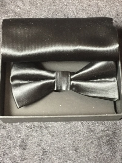 Black colour plain Bow Tie & Handkerchief for the top pocket