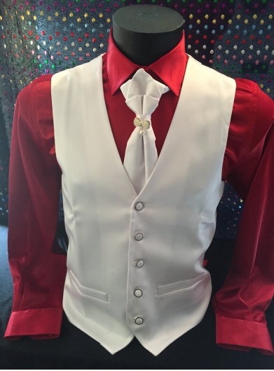 Smooth satin waistcoat in white colour with matching clip on tie, Also available in black colour