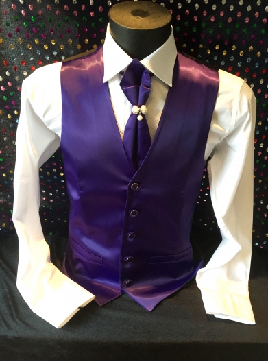 Smooth satin waistcoat in purple colour with matching clip on tie