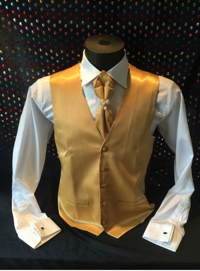 Smooth satin waistcoat in mustard colour with matching clip on tie