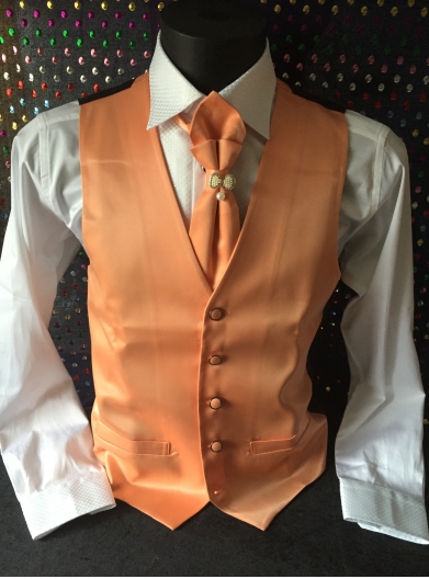 High sheen shiny peach colour jacket with black strip on the back of the lapel - It will bright up the stage