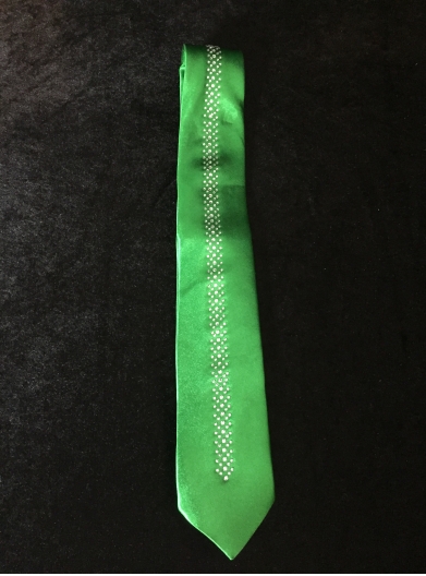 Green colour tie in satin fabric with with lovely diamante design on the front.